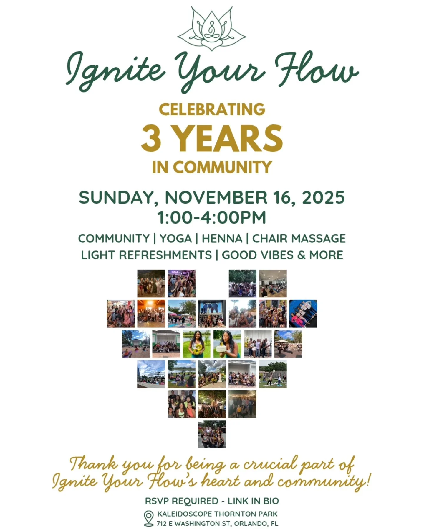 Letβs build community & ignite your flow together! I offer a variety of public group sessions throughout the month in the Orlando, Kissimmee, St. Cloud, Hunterβs Creek, and Lake Nona areas including weekly Yoga & Meditation classes, New Moon & Full Moon Yoga, Yoga & Soca for the Soul, Full Moon Yoga & Acupuncture Events, Mindful Meditations & Breathwork sessions, workshops, and much more!